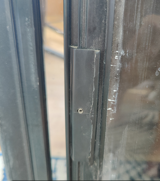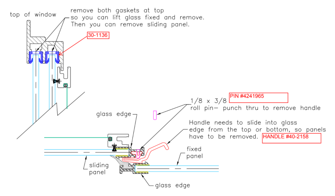 - Lay the sliding pane on a flat surface with the broken handle up.